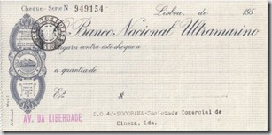 Alguns tipos de cheques utilizados pelo Banco Nacional Ultramarino