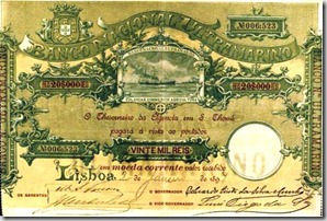 Exemplos de notas emitidas pelo BNU para todas as Colónias portuguesas