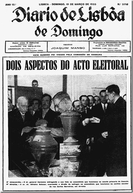 Estatística no Diário de Lisboa, também no dia 19 de Março de 1933 , dia do Plebiscito … e um panfleto de … ” um prêso que enlouquece…”