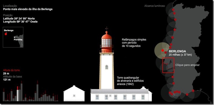 «Ao fundo do lado meridional acendeu-se de súbito uma luz vermelha, que desaparecera logo depois, para reaparecer daí a minutos. Era o farol da Berlenga (…). Na ilha moram sete pessoas, o faroleiro e a família, e dois velhos que constituem a guarnição do forte. Ali vivem de Verão e Inverno, cortados muitas vezes de toda a comunicação com Peniche pelas cóleras do Oceano, e alumiando contudo, eles os proscritos do mundo civilizado, para os caminhos do progresso, a estrada das ondas, essa larga via da civilização» Pinheiro Chagas in: “Fora da Terra”