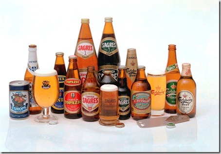 Garrafas da cerveja “Sagres” desde 1940 até 2007