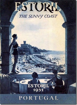 Estoril «la plage d'été et d'hiver à 24 km de Lisbonne. Trains electriques toutes les demies heures. Le climat privilégié d'Europe». Traduzindo do francês: «a praia de Verão e Inverno a 24 Km de Lisboa. Comboios eléctricos a todas as meias horas. O clima priveligiado da Europa».