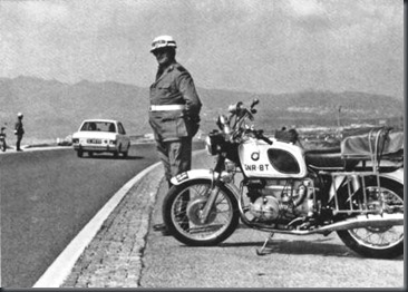 Polícia de Viação e Trânsito em 1969 e Brigada de Trânsito na estrada Cascais-Guincho