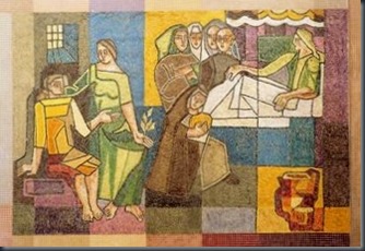Na escadaria um dos painéis das “Sete Obras de Misericórdia” de António Lino