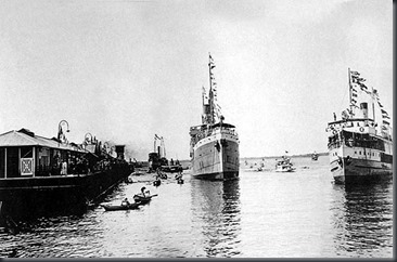 Paquete “Lima” na proa do “Arnel” , também da EIN, no porto de Ponta Delgada nos Açores em 1957