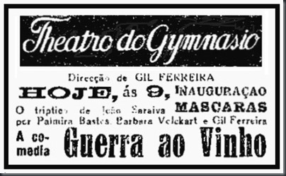 O "Theatro do Gymnasio" reabriria em 27 de Novembro de 1925, com a peça "Guerra ao Vinho"