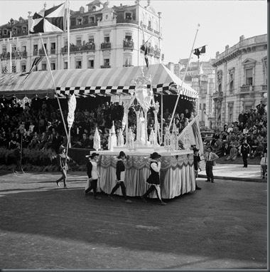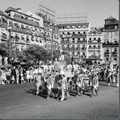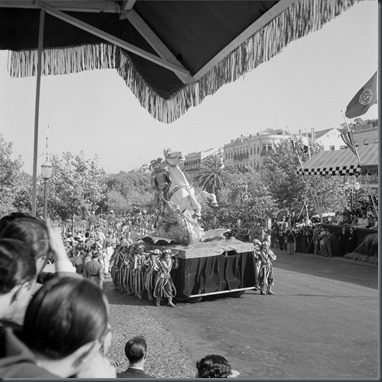 E terminou com o desfile do “Carro da Cidade” , puxado por dezoito cavalos brancos alados e escoltado pela “Guarda Fantasiada” dos soldados romanos. Este carro transportava quatro raparigas que encarnavam as figuras simbólicas da cidade de Lisboa: “Lisboa Primitiva”; Lisboa Brigantina”, “Lisboa Pombalina e “Lisboa Eterna”.