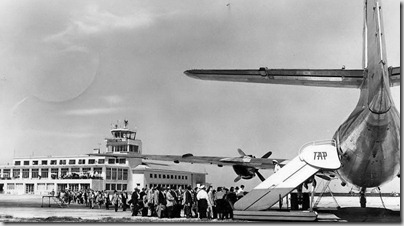 Esplanada do Aeroporto, com vista para um avião britânico “Vickers” 806 Viscount