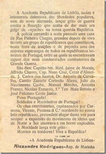 Em 1928 a Academia Republicana de Lisboa publica o seguinte panfleto