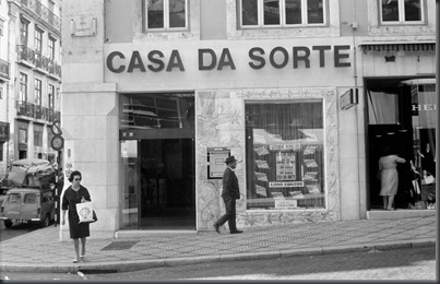 Os cartazes afixados nas vitrines nas mesma fotos, alusivas “sorte grande”, vendida pela “Casa da Sorte” em 17 de Agosto de 1940. Este prémio aqui vendido foi publicitado no “Díário de Lisboa”, nos seguintes anúncios