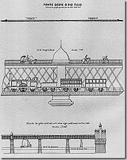 Em 1889, apareceu o projecto elaborado pelo engenheiro Seyrig, construtor da ponte D. Luis, no rio Douro, entre o Porto e Vila Nova de Gaia. O projecto consistia numa ligação ferroviária entre Lisboa e Almada. Este projecto viria a provocar outro do engº português André de Proença Vieira, combatendo até certo ponto aquele, fundado em razões geologicas da inconveniencia em perfurar o subsolo de Lisboa com um túnel entre a Estação do Rossio e a Rocha de Conde de Óbidos, onde seria a entrada da ponte.