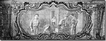 Painel da azulejos de uma das entradas … … e o do pátio da entrada da fábrica