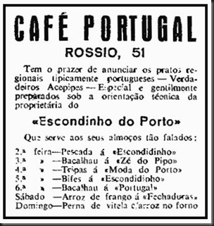 O “Café Portugal” foi inaugurado na Praça D. Pedro IV (Rossio) nos 56-58, em Lisboa no dia 16 de Abril de 1938. Foi projectado pelo arquitecto Cristino da Silva. Os seus proprietários eram Jorge Soriano, Saúl Saragga e António Maria Cardoso também sócio dos «Cafés Reunidos». Neste local tinha existido anteriormente, no século XIX uma loja de pianos “J. Heliodoro de Oliveira” oriunda da Rua dos Fanqueiros.