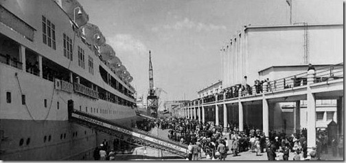 A "Gare Marítima da Rocha do Conde de Óbidos" passou a ser a gare exclusiva da "CCN - Companhia Colonial de Navegação", como se pode observar na foto seguinte de 4 de Julho de 1952 na qual se identificam os paquetes "Pátria", "Vera Cruz", e no interior da doca o paquete "Serpa Pinto".