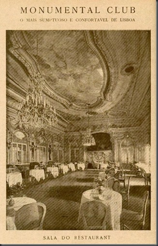 O “Club dos Restauradores” ou “Maxim’s”, foi o primeiro club a aparecer em Lisboa, e funcionou no Palácio Foz a partir de 1908, com dancing, salas de jogo e roleta, bar e restaurante onde se podia comer pela madrugada dentro. Este Club será objecto de um artigo específico, já elaborado e a ser publicado neste blog, brevemente.