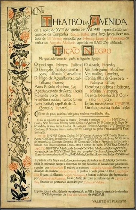Comédia “Tição Negro” estreada em 18 de Janeiro de 1902 pela “Companhia Souza Bastos”