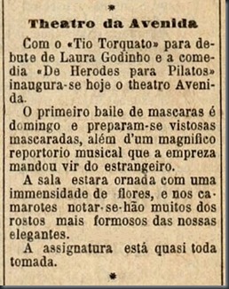 Um almanaque de 1917 descrevia o “Theatro da Avenida” nos seguintes termos: