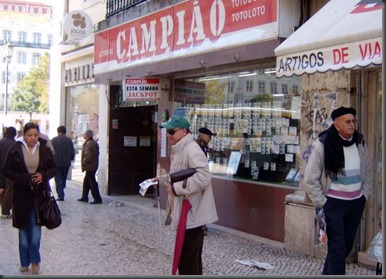 Anúncios de duas casas de câmbios e loterias em Lisboa