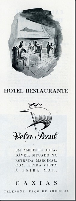 O restaurante, bar, casa-de-chá, e pequena estalagem "Vela Azul", localizado em Caxias junto à Estrada Marginal, e projectado pelo arquitecto Filipe Nobre de Figueiredo (1913-1989), foi inaugurado em 30 de Dezembro de 1945.