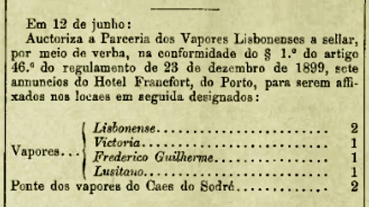 Lembro que o primeiro barco "vapor lisbonense" foi construído em Alcântara, nos estaleiros Hugh Parry, em 1860 denominado "Alcântara". Propriedade de Frederico Guilherme Beaupin Burnay (1815-1888), destinava-se à carreira fluvial entre Cais do Sodré e Pedrouços, carreira que foi inaugurada em Janeiro de 1861 e tinha escalas em Alcântara e Belém. O segundo foi o "Progresso", construído, igualmente por Hugh Parry mas no aterro da Boa Vista, lançado à água em 14 de Dezembro de 1861, e tendo feito a sua viagem inaugural em 12 de Fevereiro de 1862.